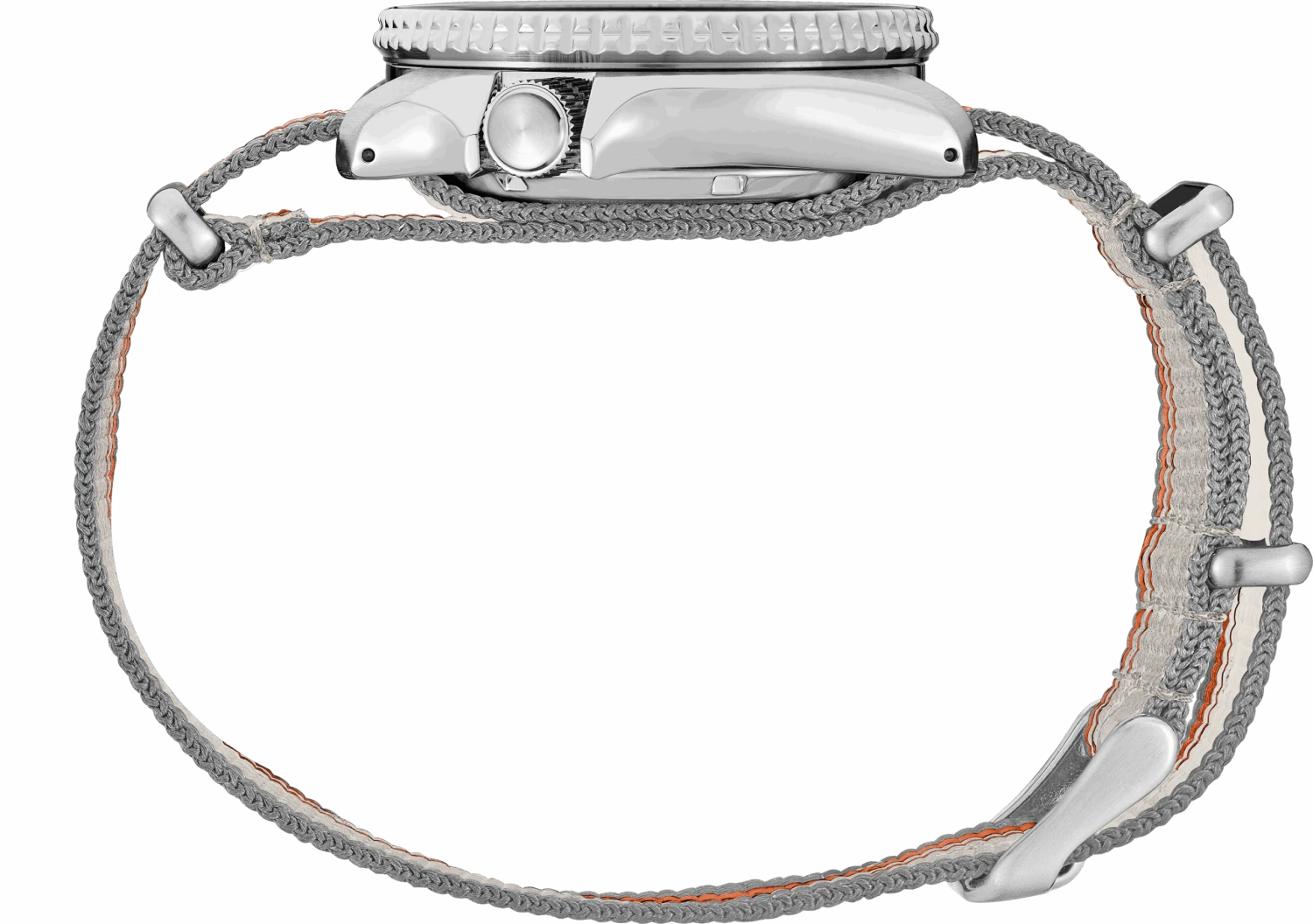 Seiko 5 Sports U.S Special Creation. With vivid colors and bold design inspired by the stripes of vintage cars, this dynamic watch, launched exclusively in the U.S. market, delivers both memorable styling and durability. For added impact, the silver and orange stripes flow from the dial to the coordinated nylon strap, sized to fit easily over a racing uniform. Framed by a light silver uni-directional rotating bezel, the dial also offers a day/date calendar, blue second hand, and luminous hands and markers. Providing automatic technology that you control with every movement, this memorable timepiece is powered by a 24-jewel movement that beats at a frequency of 21,600 vibrations per hour, with a power reserve of approximately 41 hours and manual winding capability. The case, in stainless steel, includes a screwdown see-through caseback for a view of classic timekeeping in action. 10 bar, 100M Water Resistant