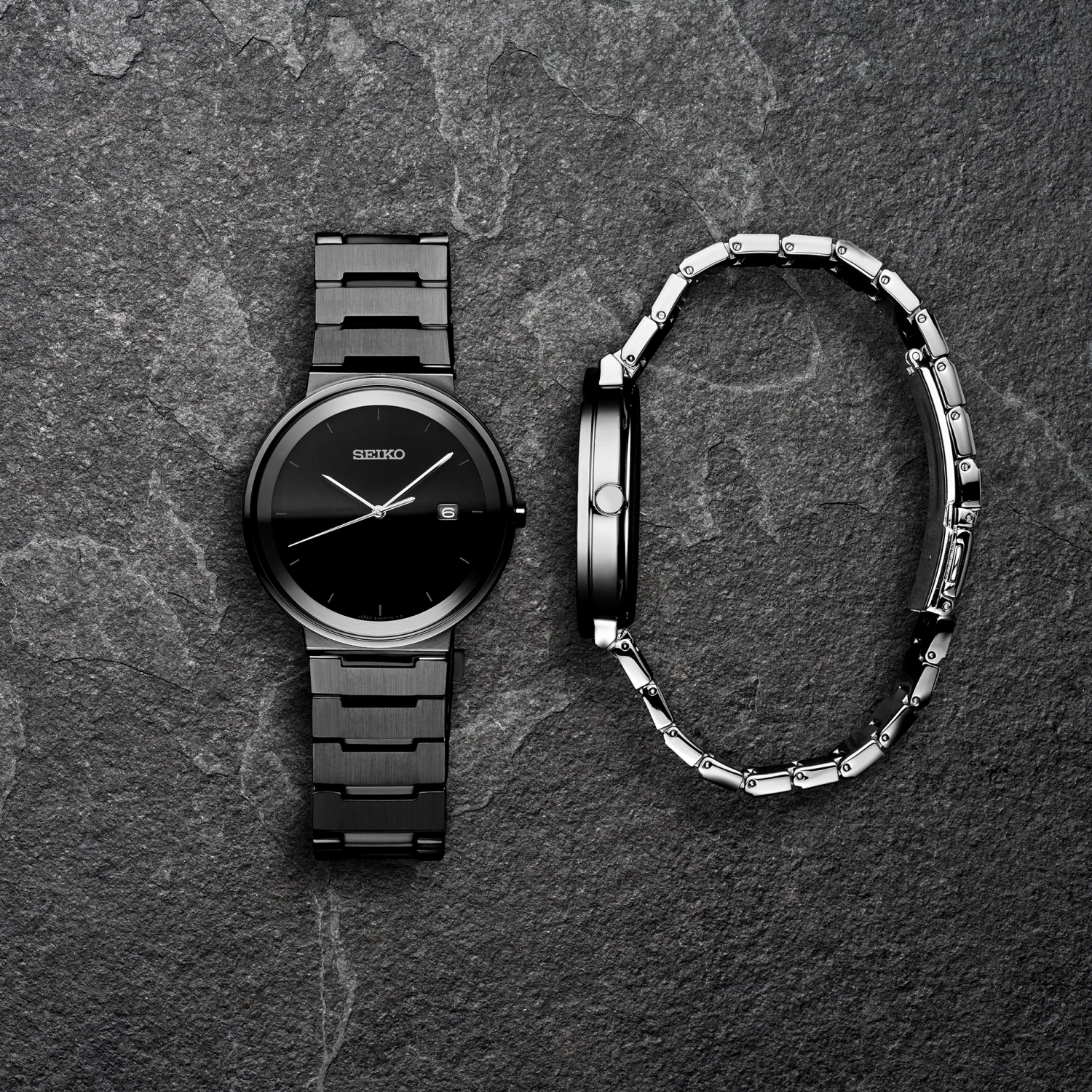 Stainless steel case and bracelet with black ion finish