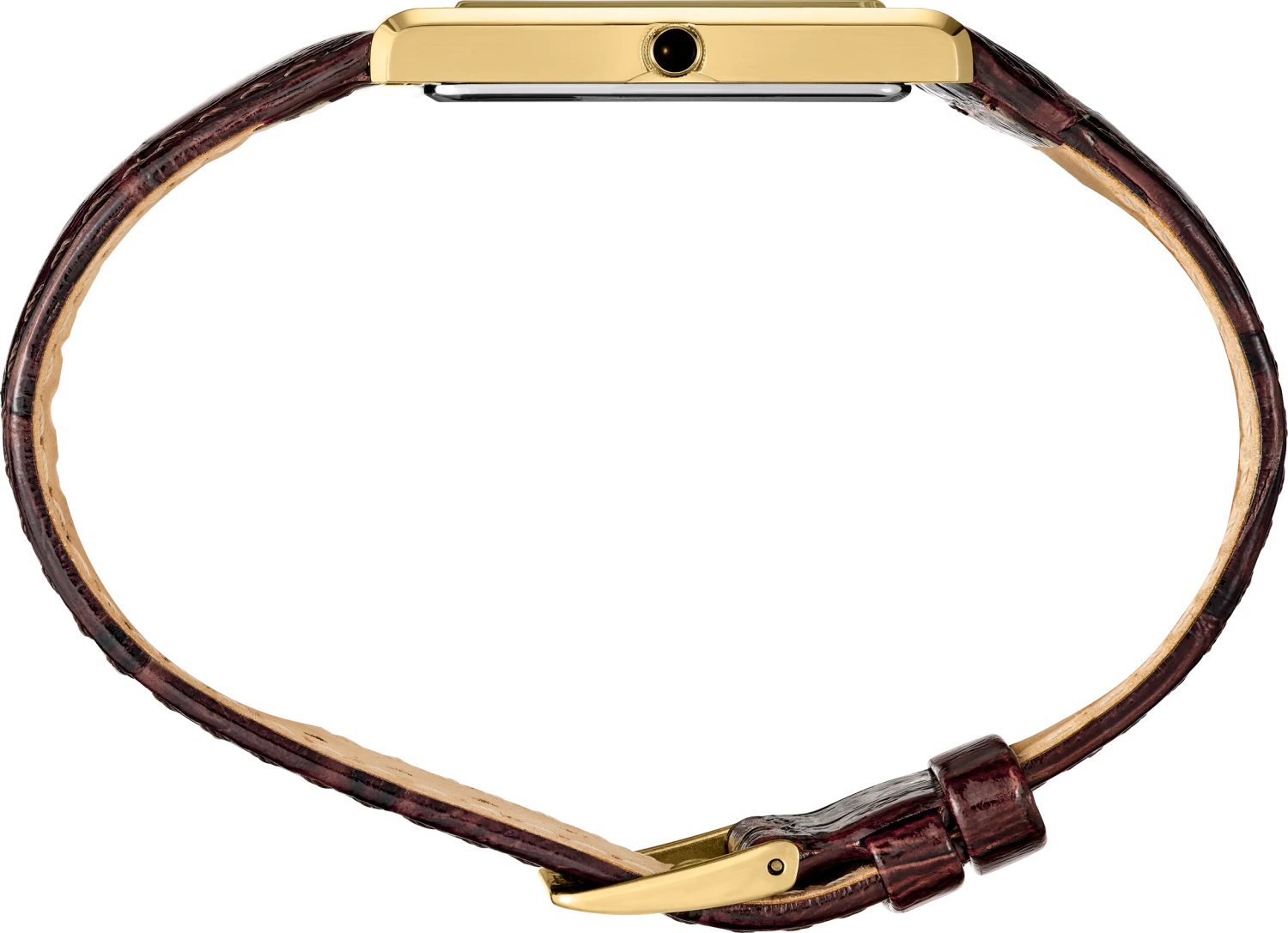 Rectangular stainless steel case with gold finish